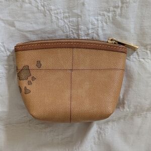 Tags travel neutral world map geography leather luxury beige tan brown purse pouch coin purse toiletries jewelry bag shopping Italy Italian made European Europe vacation cruise holiday