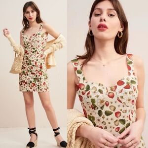 Rouje Paris Angie Mini Dress in Strawberry Blanc Print. Size 38 (US 6). Fits like a Small.