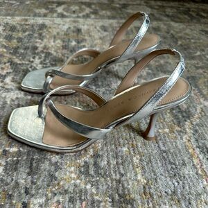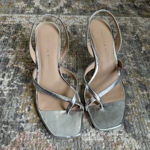 Veronica Beard Silver Strappy Square Toe Heals Merrit Silver Sandals Size 7