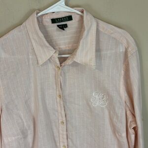 Lauren Ralph Lauren Light Pink Linen Striped Shirt Size 1X