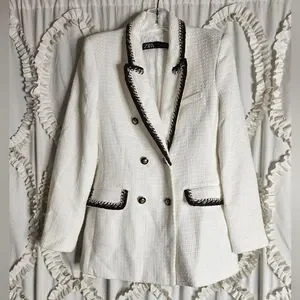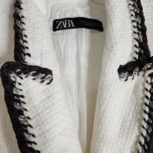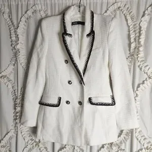 Zara Textured White Brown Button Blazer size Medium
