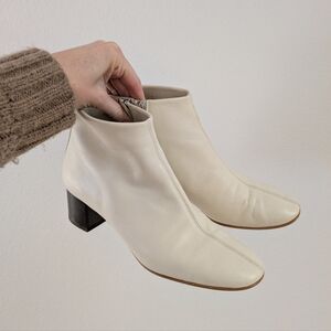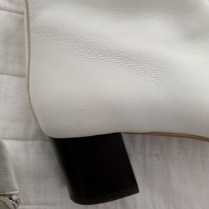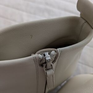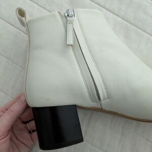 See photos for a few tiny scuffs. Otherwise these booties are in amazing condition! Gently worn. Leather, made in Italy.