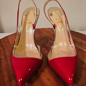 Christian Louboutin Red & Clear Optisexy 100 Patent/PVC/SPEC EUC Sz 38.5