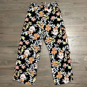 ROXY Black Floral Print Pull On Beach Pants. Size S