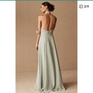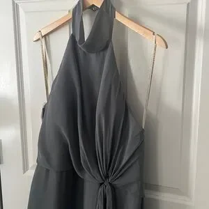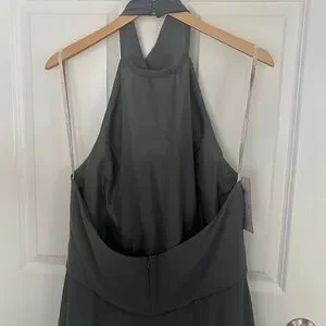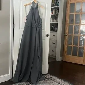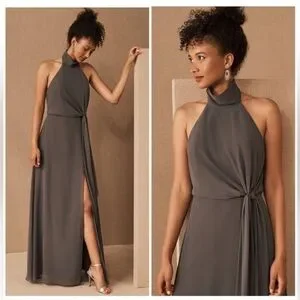 NWT Jenny Yoo Elliya Morning Slate Gray Halter high slit Bridesmaid Dress Sz 18