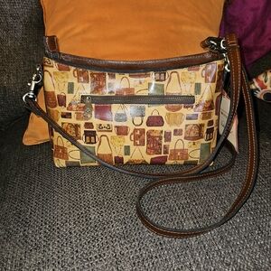 Patricia Nash Leather Multicolor Crossbody Bag With Playful Handbag Print.