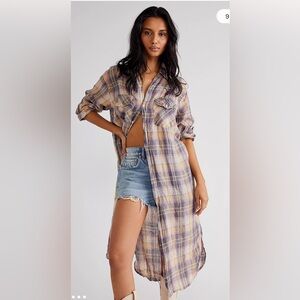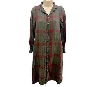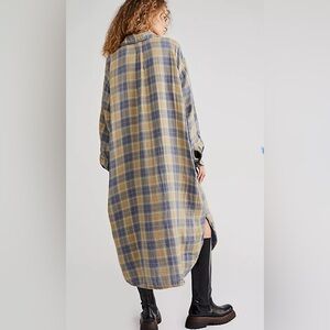FREE PEOPLE GP SHADES COLLAB BUTTON DOWN PLAID MAXI SHIRT-DRESS MINA PLAID XS