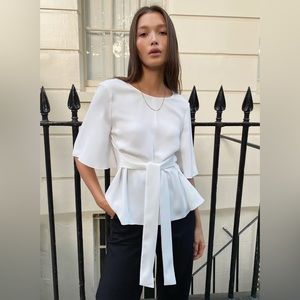 Aritzia Babaton Britannic White new Summer Vacation Formal Casual Blouse Size L