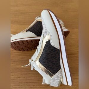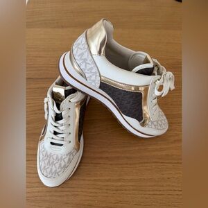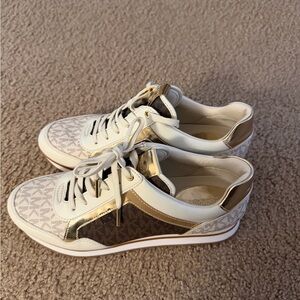 Michael Kors Women’s Sneakers Logo Print White Gold Size 8.5