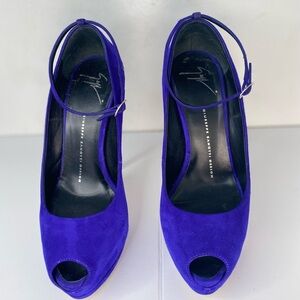 Giuseppe Zanotti Violet Designer Luxury Suede Peep-Toe Platform Pump Heels