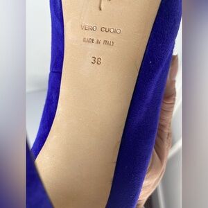 Elegant purple suede heels with a stylish peep-toe. Perfect for any occasion. Bloomingdales brand.