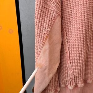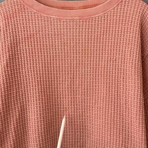 American Eagle pink oversized waffle knit pullover. Size small. Some staining on front and sleeves, see photos.