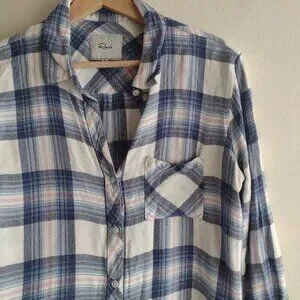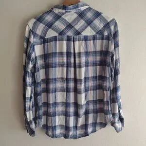 Rails Charli Shirt M Blue Pink Plaid Flowy Relaxed Fit Button Front Top