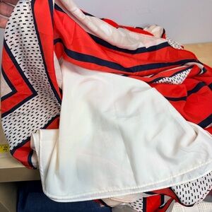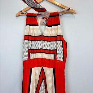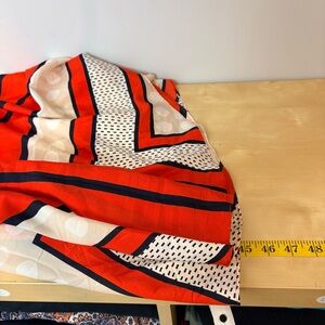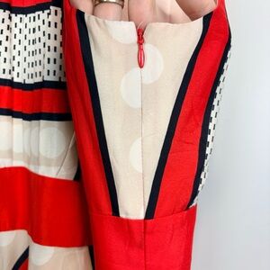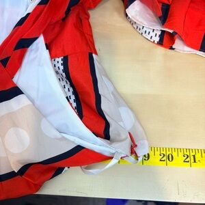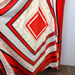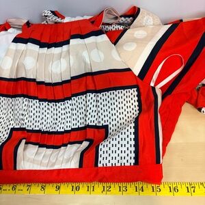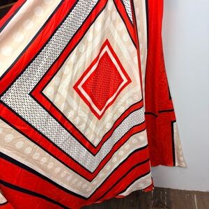 Bold red and white design. Eye-catching geometric patterns. Sleeveless with a flattering fit.