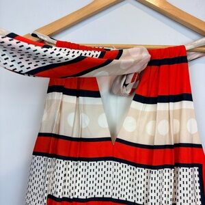 ELIZA J Poppy Stripe Scarf Print Crepe de Chine Bow Tie Back Maxi Gown Dress