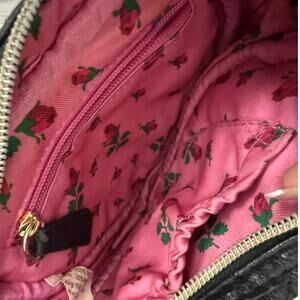 Betsy Johnsons black gold heart faux leather crossbody bag purse valentines day