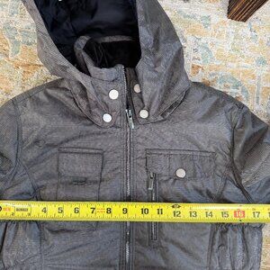 Gray Obermeyer Ski Jacket with cute runching in the back. Powder skirt, and detachable hood, soft cuffs. Worn only a few times, like new condition.