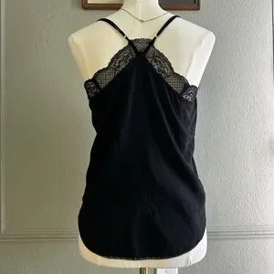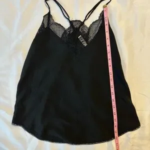 Elegant black cami top with lace trim. Perfect for layering or wearing alone.