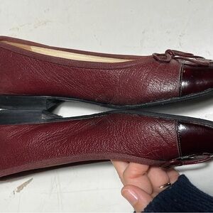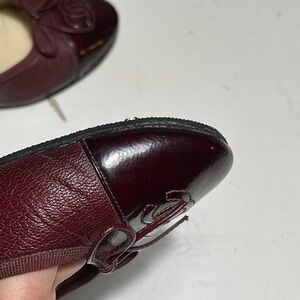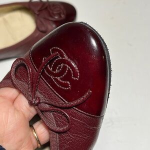 CHANEL Women's Dark Red Leather Flats