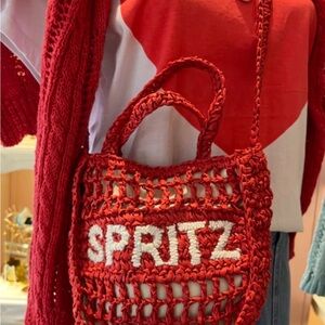 Universal Thread Spritz, Red and White- Crochet Mesh Tote Crossbody Bag.