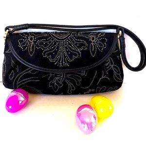 Talbots Elegant Black Beaded Women's Clutch Bag