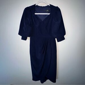 Aidan Mattox Puff Sleeve Evening Dress in Navy. Size 0. Materials and measurements in pics. Like new!! Decided to wear a different dress to a wedding.