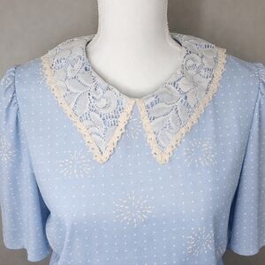 Vintage 1970s Blue Lace Collar Dress | Size 15–16 | Made in USA | Grandmacore
