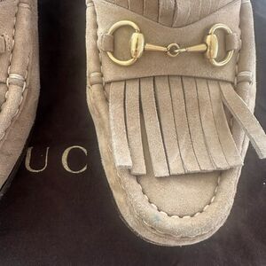 GUCCI Women's Horsebit Fringe Suede Beige Loafers EU 37