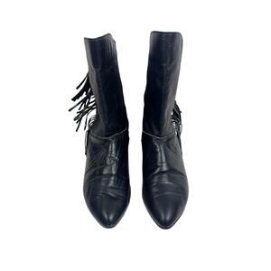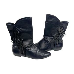 Vintage Black Leather Western Cowboy Fringe Boots: 9M