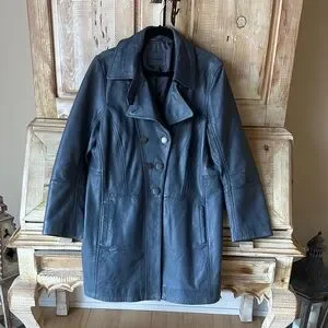 Chic Gray leather jacket by Sundance. Features a double-breasted design. Ideal for stylish outings. New with no tags. Never been worn