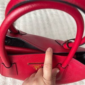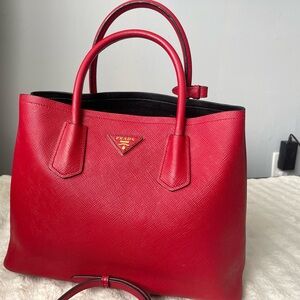 Chic and versatile Prada tote in scarlet leather. Ideal for everyday elegance. (No box)