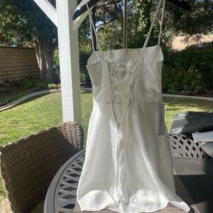 Elegant white mini dress. Spaghetti straps. Perfect for any occasion. Missing partial brand tag but authentic Princess Polly.