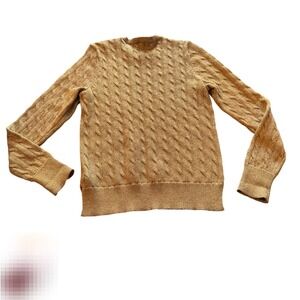 Lauren Ralph Lauren Petite Metallic Cable Knit Sweater Gold Button Detail