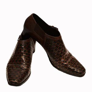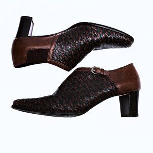 BRIGHTON “Turner” Sophisticated Woven Brown/Black Leather Booties Size 9 M