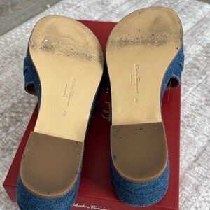 Salvatore Ferragamo Navy Denim Slides with Gold Buckle