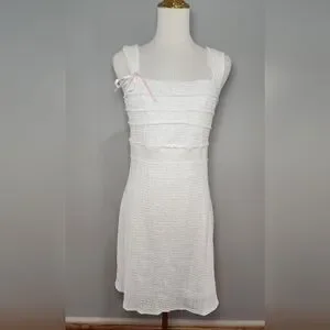 MEROKEETY Mini Dress Tie Back Lined White Prom Party Wedding Cocktail Size M