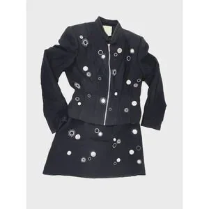 Alberto Makali Cache 2PC Outfit Set Jacket Skirt Womens Size 8 Black Embellished
