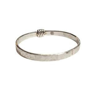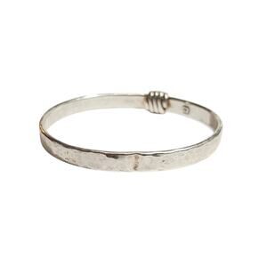 Vintage Sterling Silver Hammered Hollow Bangle Bracelet 8"