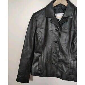 Wilsons Womens 90s Classic Leather Jacket Size M Black Fitted Minimalist Capsule
