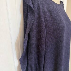 Banana Republic Navy Diamond Jacquard Blouse Sheer Sleeves Size M