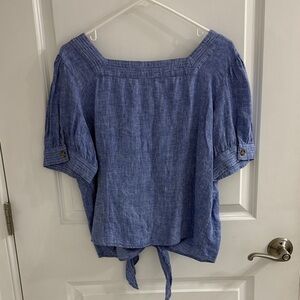 Talbots Blue Linen Button-Down Blouse