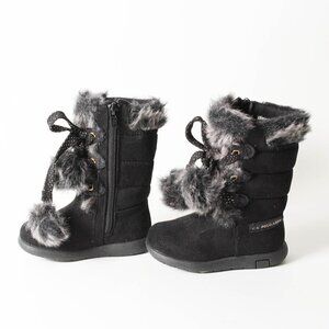 Keep your little one's feet warm and stylish with these cute U.S. Polo Assn. snow boots! Featuring fun fuzzy tie-up tassels, convenient zipper sides, and a durable design. Size 5. Gently pre-owned, look very slightly used.