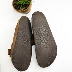 Comfortable brown leather sandals featuring adjustable buckles. Perfect for casual wear. Men’s BIRKENSTOCKS Brown Leather Sandals with Buckles Still have tons of life left in them Size 11