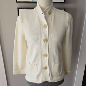 J. Jill Women's Small Cream Button Front Pocket Work Casual Cotton Cardigan