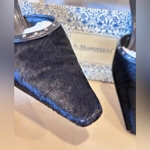 Vintage A. Marinelli black calf hair mules pointed toe silver tone studs