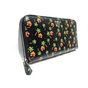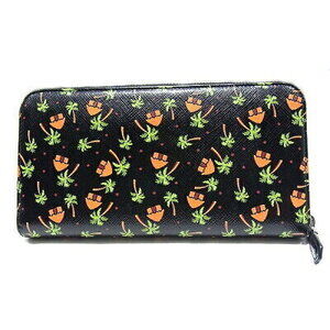 Prada Round Zip Long Wallet Black Wallow Calfskin SAFFIANO Palm Tree House