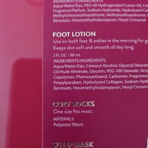 Experience ultimate relaxation with the Body Prescriptions Foot Care Set. This pink-themed collection includes a foot scrub, foot lotion, plush socks, and an eye mask for a soothing self-care routine.