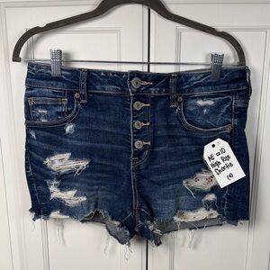 American Eagle Hi-Rise Shortie Distressed Denim Shorts Size 10