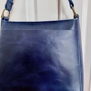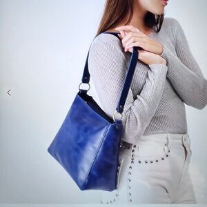 Gorgeous blue bag in excellent condition (never worn). Hardware has been modified to allow you to swap out the strap and wear it crossbody. The third picture shows the modified D rings. PLG sells straps and many are available on Etsy, Amazon, etc.