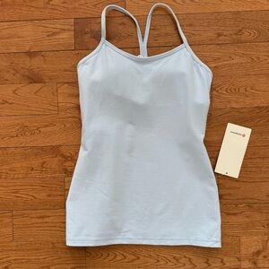 Flow freely through yoga and studio training classes in this skinny-strapped racerback tank with built-in support.